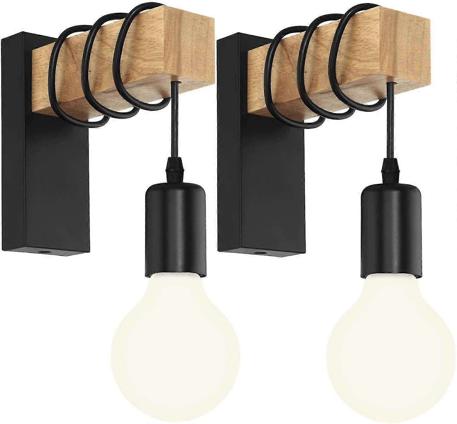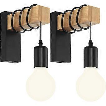 Wall Lamp Industrial Wood Wall Lamp Vintage Wall Lighting Interior Wall Back E27 Wall Spot Black (without Bulb)