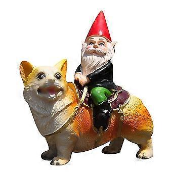 Funny Guy Mugs Garden Gnome Statue,gnome Riding A Corgi
