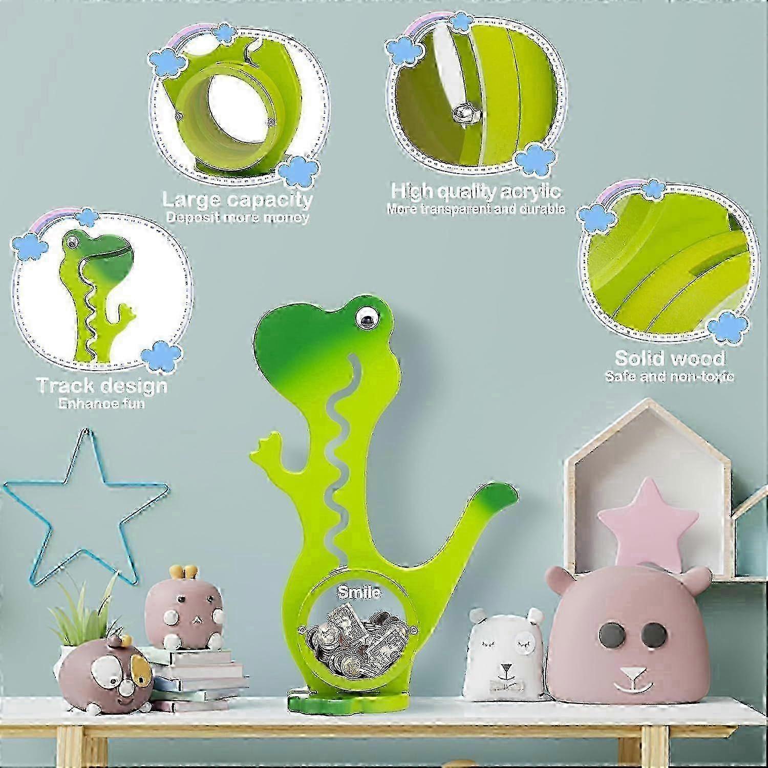 Wooden Dinosaur Piggy Bank for Boys Kids Girls Clear Big Belly Animal Coin Bank for Toddler Real Money Toy