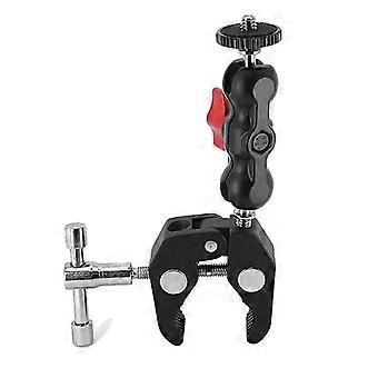 Universal Multi Ball Head Clamp Double Ball Adapter Shoe Mount Adapter for LED Light Black