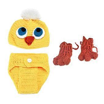 Adorable Yellow Duck Design Photography Costumes Hand Knitting Baby Apparel Set Knitted Suit Props Infant Photo Outfits with Shoes