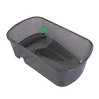 Turtle Tank with Docking Ramp Basking Platform and Swimming Area for Pet Made of Plastic Black Small Size