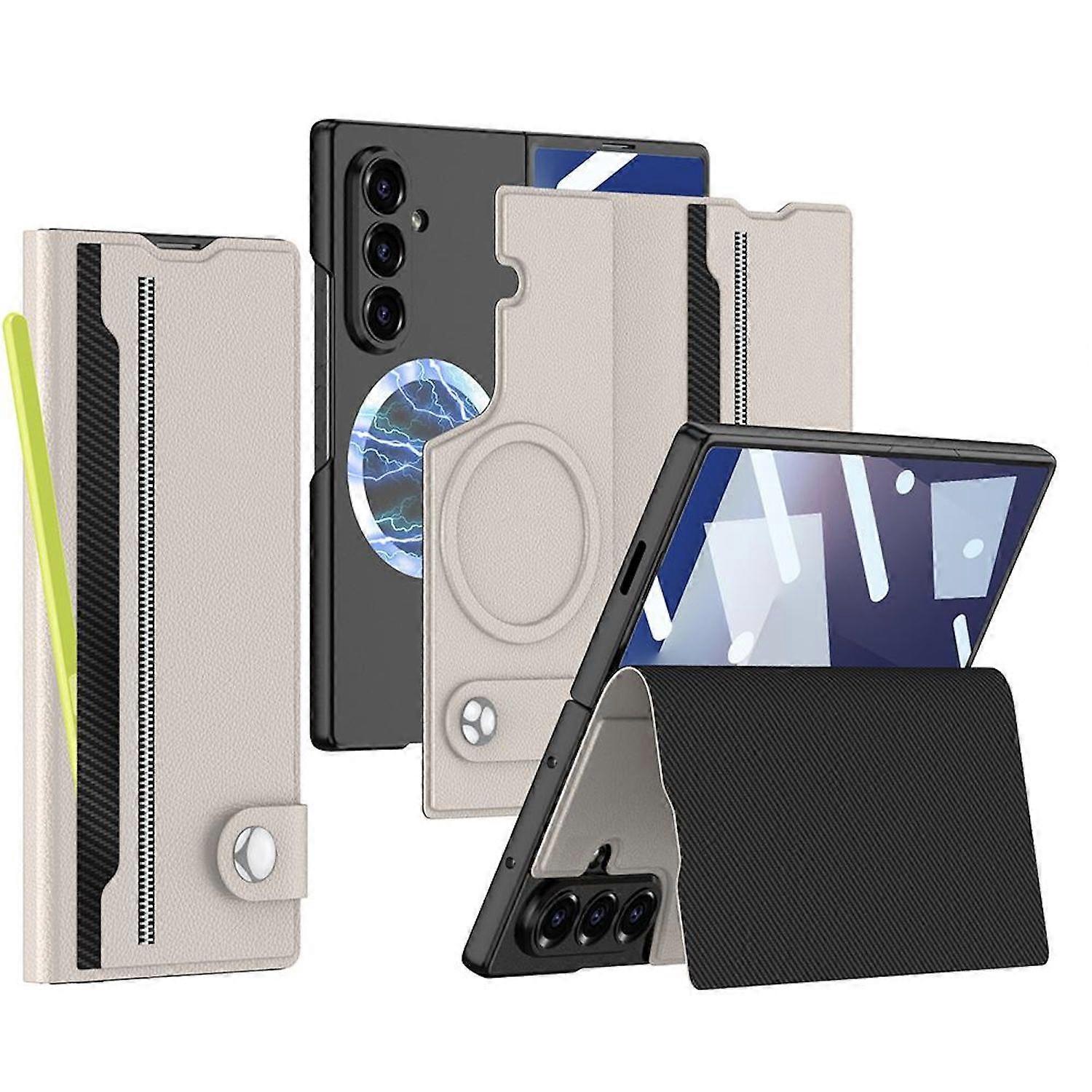 Für Samsung Galaxy Z Fold7 GKK MagSafe Split Flip Leder Hülle Beige