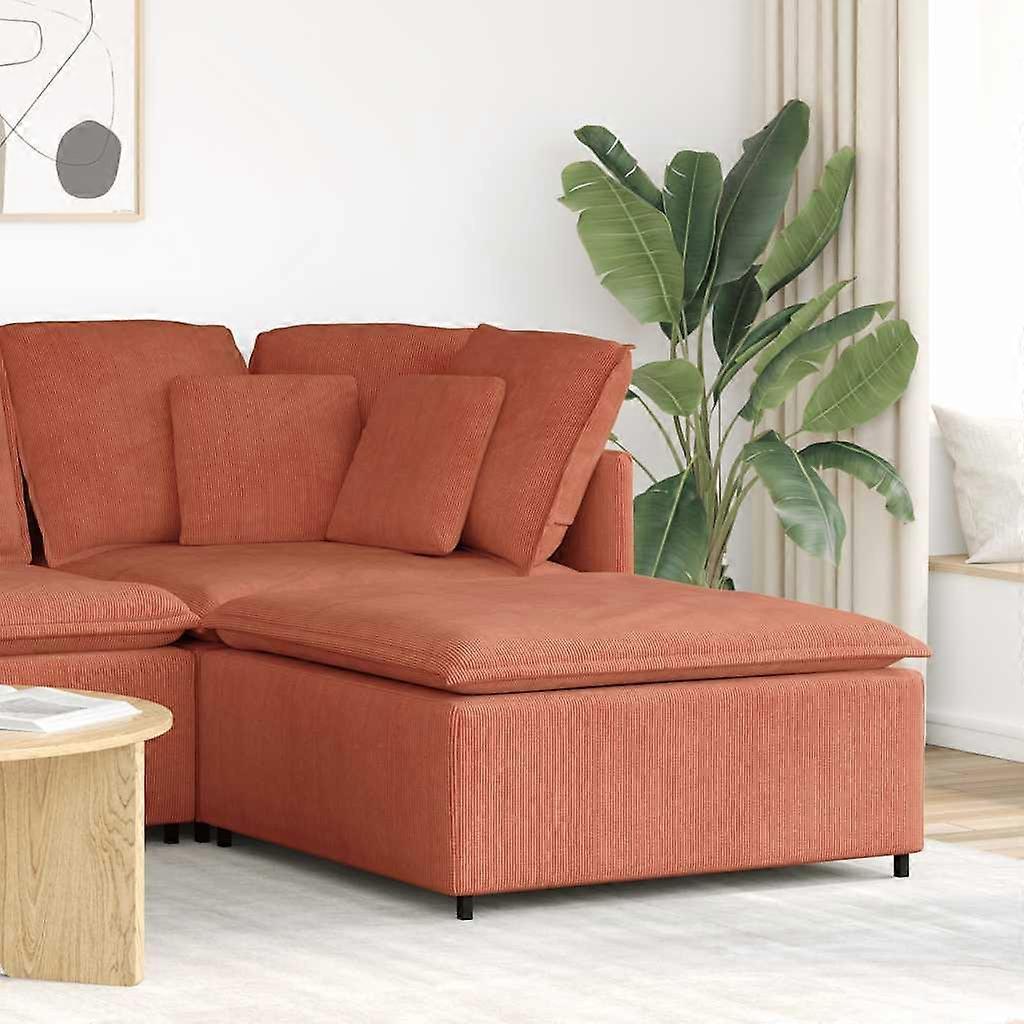 Der modulare Fußhocker wertet deinen Wohnbereich auf und verbindet elegantes Design mit außergewöhnlichem Komfort. Kombiniere es, um die perfekte Sitzgruppe für dein Zuhause zu schaffen. Weiche und langlebige Sitzmöbel: Die Polsterung aus Cordstoff und die Schaumstofffüllung sorgen für Weichheit und Atmungsaktivität und bieten lang anhaltenden Komfort und Haltbarkeit, sodass sie dem täglichen Gebrauch standhalten und ihr elegantes Aussehen behalten.Stabiler und robuster Rahmen: Mit seinem starken und robusten Metallrahmen garantiert der Fußhocker außergewöhnliche Stabilität und ist für den täglichen Gebrauch gebaut.Zusätzlicher Komfort: Der Hocker ist mit einer Sitzfläche aus Textilene ausgestattet und bietet eine außergewöhnliche Unterstützung für die Entspannung. Die gepolsterte Polsterung und das ergonomische Design machen ihn zum perfekten Begleiter für dein Sofa.Modulare Flexibilität: Das Sofa ist Teil einer vielseitigen, modularen Kollektion, die es dir ermöglicht, es mit anderen Modulen zu kombinieren, um eine individuelle Sitzgruppe zu schaffen, die deinen Bedürfnissen und Vorlieben entspricht. Besuche unseren Shop, um weitere Sofamodule zu entdecken, mit denen du ganz einfach Teile kombinieren kannst, um die perfekte Konfiguration für deine Raumgröße und -gestaltung zu erhalten.Auffälliges Design: Die ästhetischen und einladenden Details des Fußhockers werten deinen Wohnraum auf und machen es zu einem beeindruckenden Blickfang, der sich wunderbar mit verschiedenen Einrichtungsstilen harmonisiert. Gut zu wissen:Dieses Modul lässt sich leicht mit anderen Teilen aus unserem modularen Sortiment verbinden. Wirf einen Blick auf unsere Kollektion, um passende Module zu finden und eine Einrichtung zu schaffen, die perfekt in deinen Raum passt. Farbe: Rot-orangePolstermaterial: Cordstoff (80% Polyester, 20% Nylon)Gestell: MetallFüllung: SchaumstoffGesamtabmessungen: 100 x 100 x 48 cm (B x T x H)Sitzbreite: 100 cmSitztiefe: 100 cmSitzhöhe über dem Boden (mit Kissen): 48 cmMax. Belastbarkeit: 110 kgZusammenbau erforderlich: JaLieferung umfasst:1 x Fußhocker1 x SitzpolsterMontagezubehör