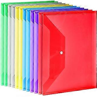 12 Pack Plastic Envelopes Poly Envelopes, A4 Clear File Bags Document Folders Document Organizers With Snap Button