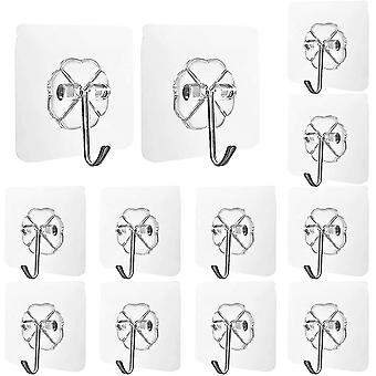 12 Pieces Transparent Adhesive Hooks, Waterproof And Reusable Seamless Hooks, With Stainless Hooks,