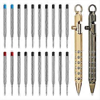 2Pack Bolt Action Pen Set, Hexagonal Solid Brass Pocket Pen with 20 Ballpoint Refills C