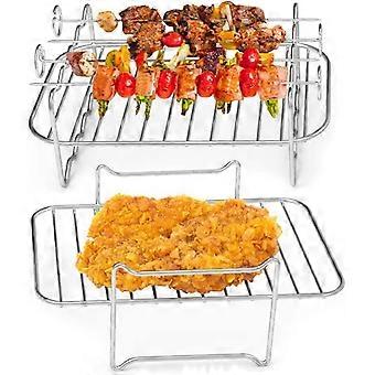 2Pcs Air Fryer Rack for Air Fryer, 304 Stainless Steel Multi-Layer Dehydrator Rack with 4 Barbecue Sticks Double Layer Rack Accessories for Double Bas