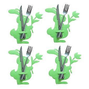4pcs Easter Tableware Utensil Holders Knife and Fork Cover with Rabbit Design and Flower Wrapper Suitable for Home Dining Decor
