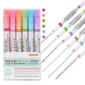 6 Piece Curve Highlighter Set With 6 Different Curve Shape Tip Pens, Colorful Curve Pens, Highlight