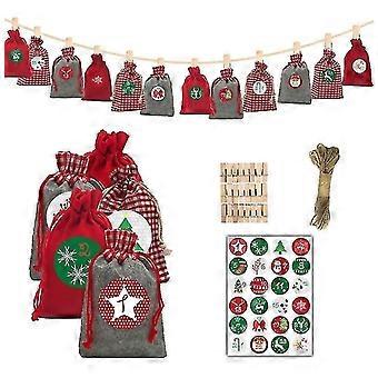Felt Fabric Calendar Bag Set Felt Gift Drawstring Bag With Digital Stickers Christmas Advent Countdo