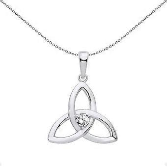 Jewelco London Ladies Sterling Silver CZ Celtic Trinity Trefoil Triquetra Knot Solitaire Pendant Necklace 18 inch