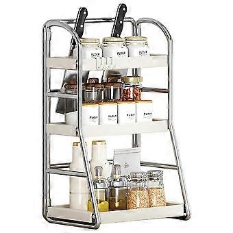 Kitchen Countertop Organizer 3-Tier 30cm Width Spice Rack Utensil Holder Knife Stand Multi-Function Storage Shelf
