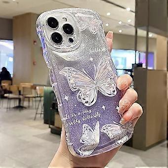 3D Print Butterfly Wavy Ripple Glitter Case for iPhone 15/14/13/12 Pro Max—Purple, Compatible with iPhone 12 Pro