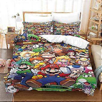 Super Mario Printed Bedding Set Pattern Duvet Cover with Pillowcases Microfiber D Game Characters Printed Microfiber Bedding, for Adults Teens