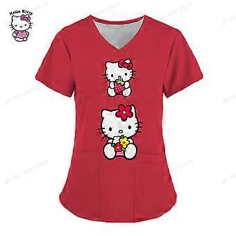 Uniforme d'infirmi��re �� manches courtes pour femmes, uniforme de travail Hello Kitty, chemisier de poche, uniformes m��dicaux, accessoires